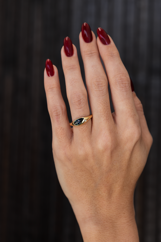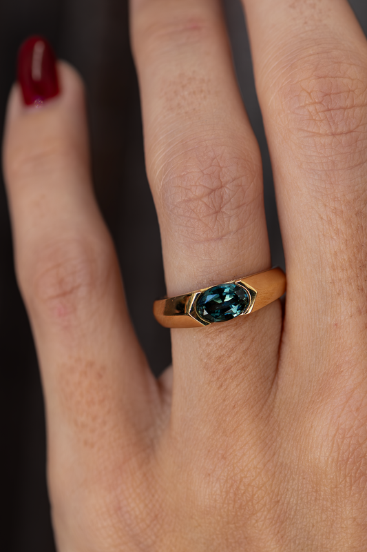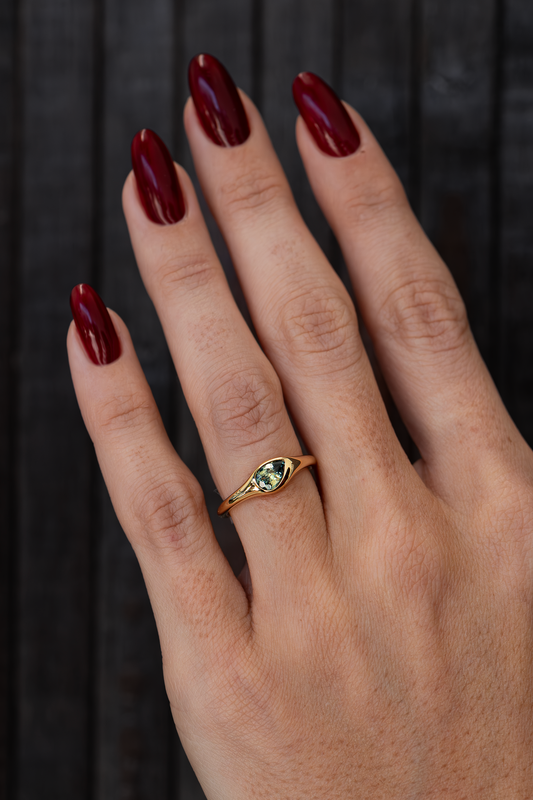 1.46CT Green Pear Sapphire Full Bezel Ring