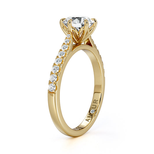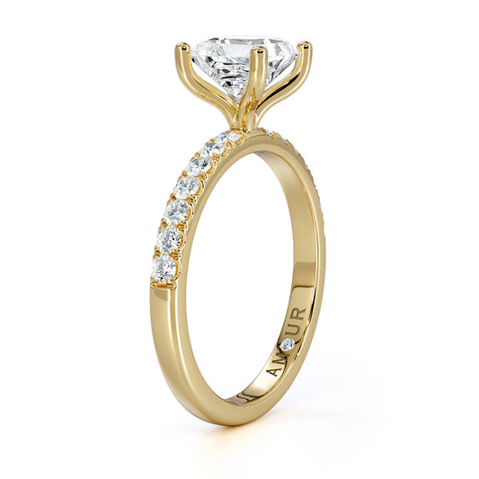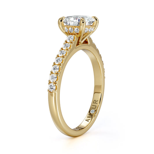18k Gold Petite Four Claw With French Pave Set Diamond Band