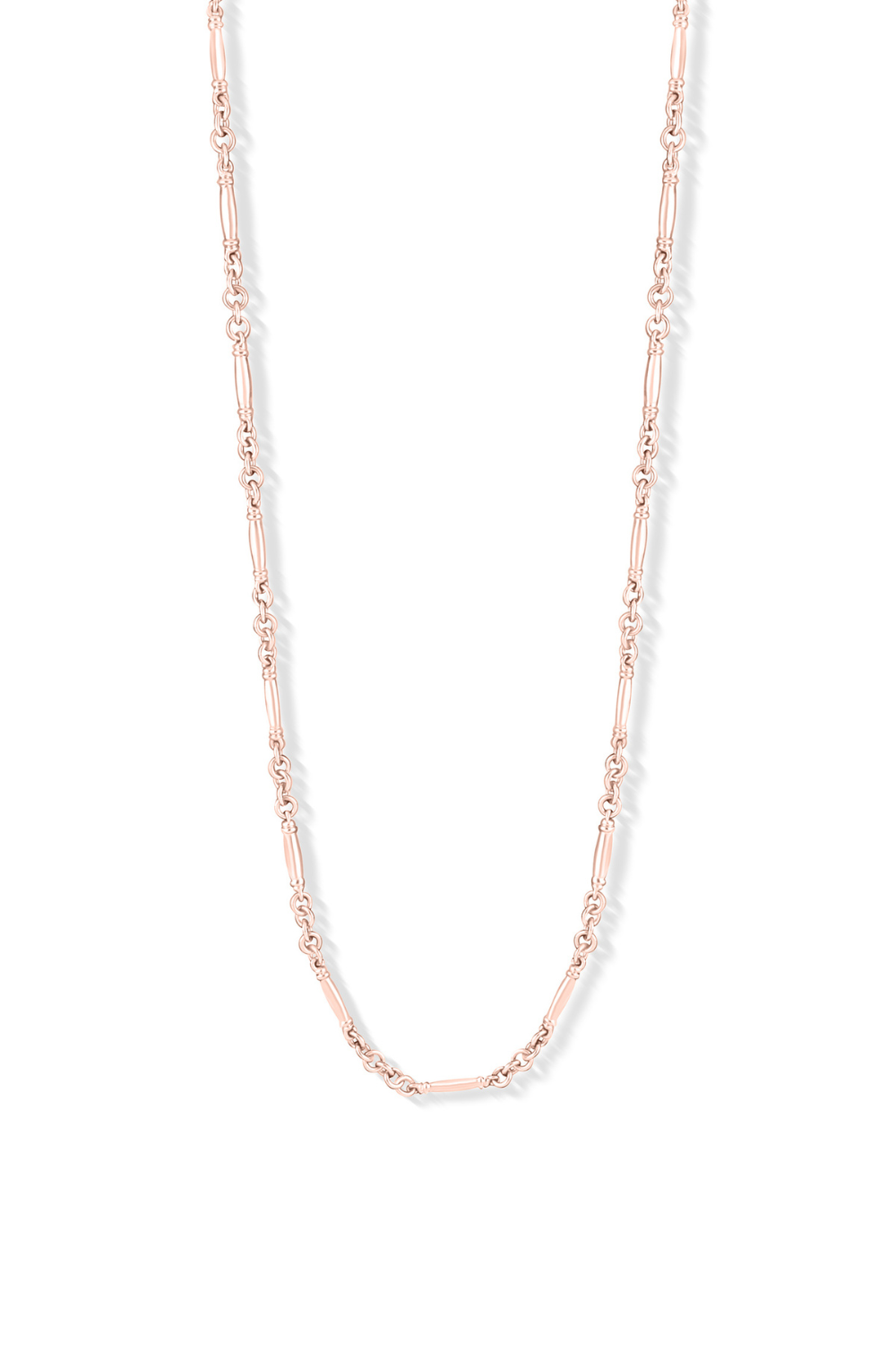 The Alessia chain necklace can be found with a matching bracelet. This exquisite set includes a bracelet and a matching necklace, both featuring a unique and sophisticated pattern of five round links interspersed with a distinctive fancy bar link. Our necklace length is a standard 45cm