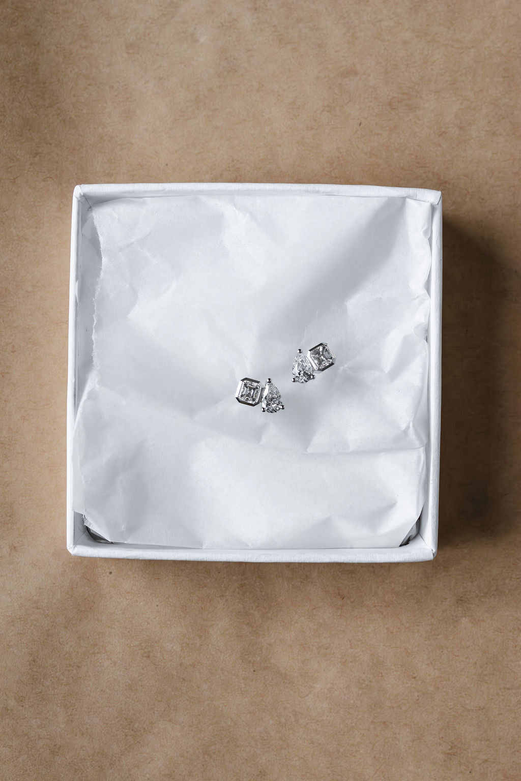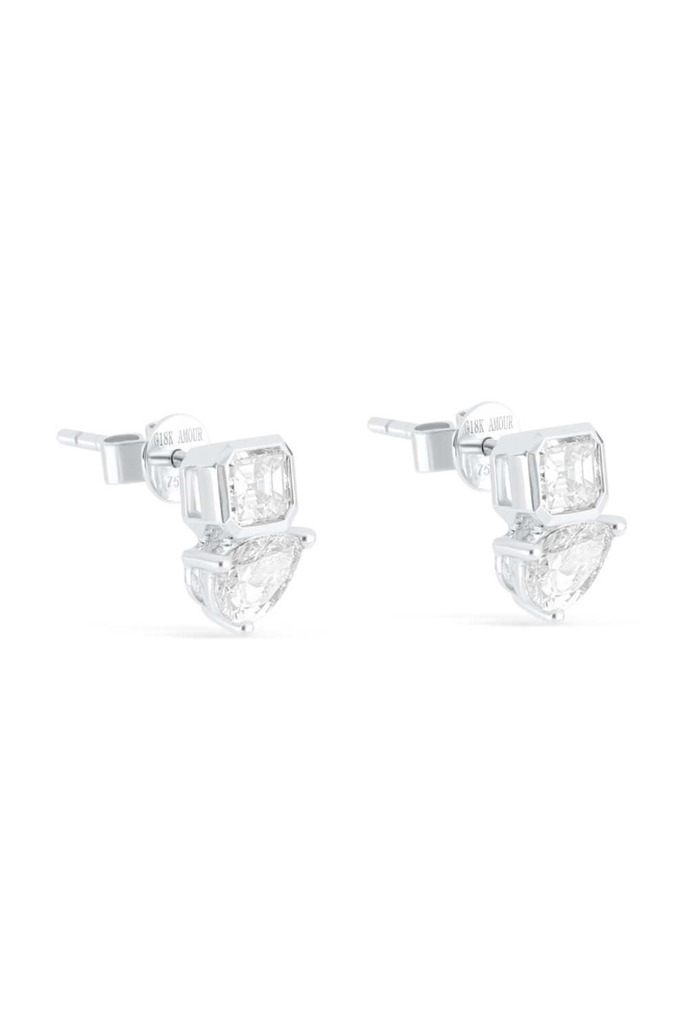 Introducing our 18K Gold Toi et Moi Style Stud Earrings, a mesmerising pair that captures the essence of eternal love. Each stud showcases a bezel-set 0.30 carat asscher cut diamond, symbolising unity, alongside a complementary 0.35 carat pear cut diamond held by a delicate three-prong setting. Both diamonds boast impeccable quality with F colour and VS clarity.