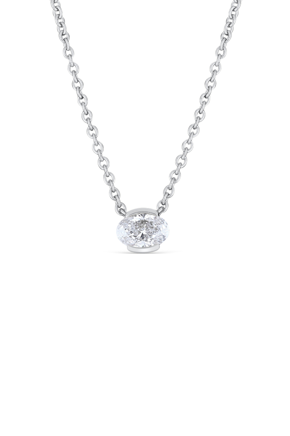 18k East-West Oval Diamond; Half Bezel Set Necklace