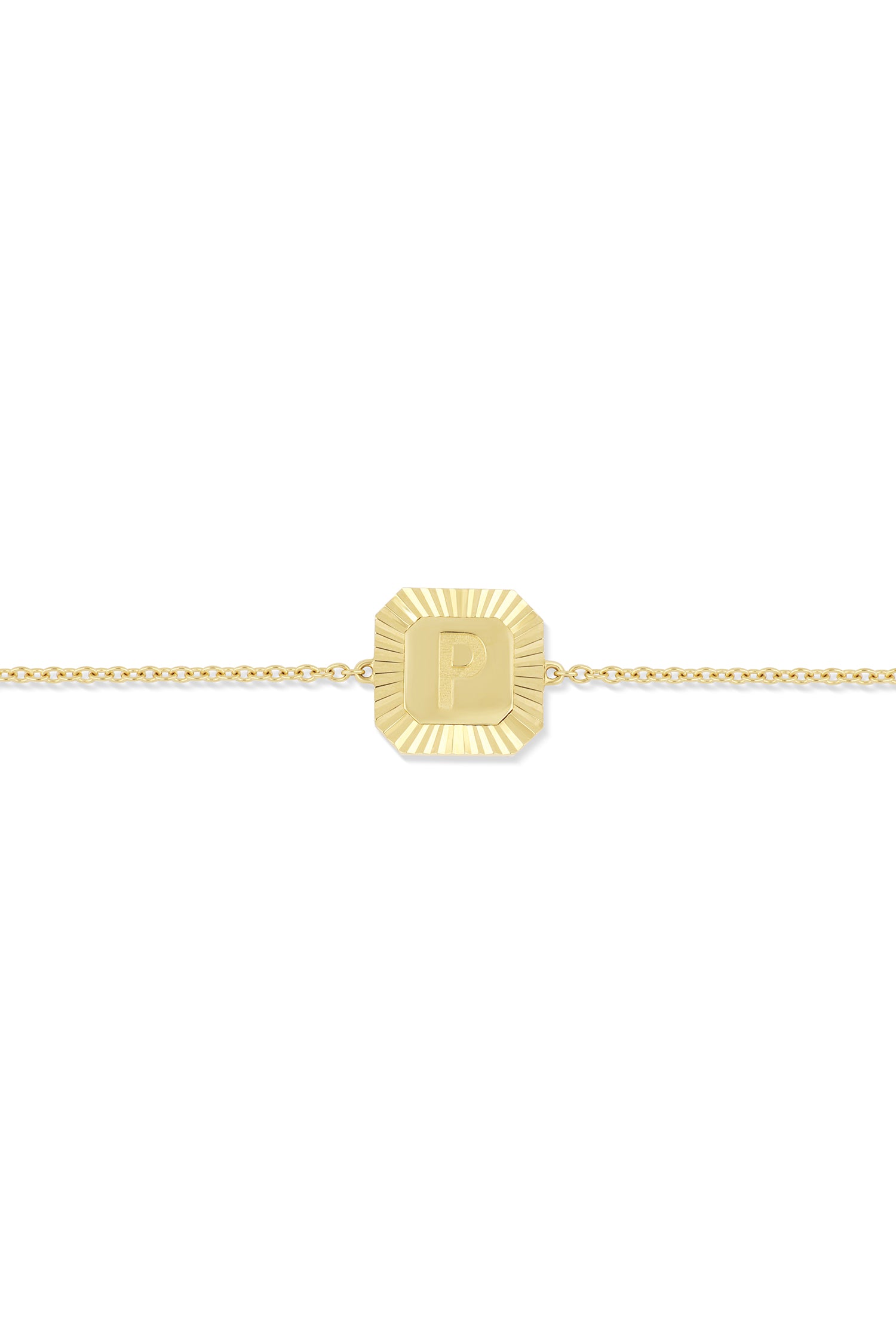 The Amour Signature Letter Bracelet is crafted from 18k solid gold and features a curb link chain and a unique cut-corner square pendant. This iconic piece is designed with a fluted edge pendant with your initial of choice in the centre.