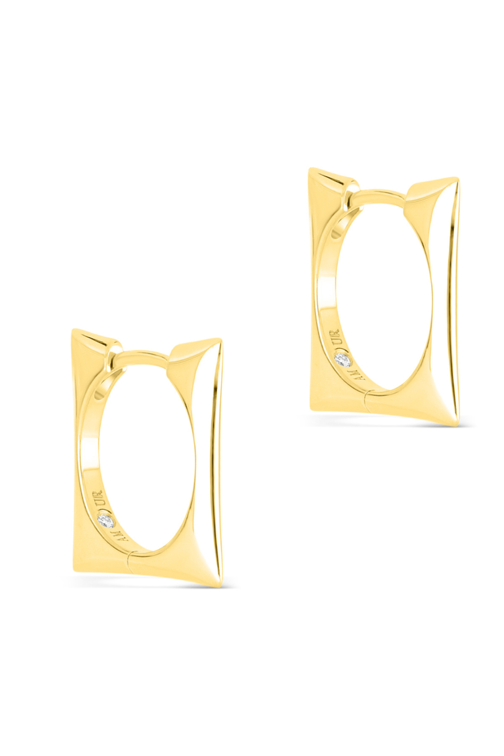 Introducing our Peyton Earrings, a perfect complement to the matching ring. These earrings feature a cushion-shaped hinged hoop design with a sleek knife edge style, creating a modern and sophisticated look. With an approximate length of 15mm, they offer a balanced blend of elegance and contemporary charm.